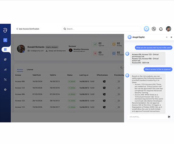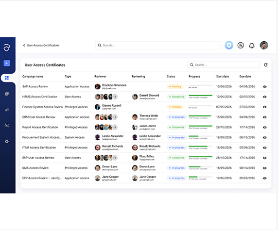Anugal treats certifications as continuous governance controls, not periodic checklists. Review campaigns are orchestrated end-to-end assigning the right reviewers, surfacing risk context, enforcing justification, automating remediation, and preserving immutable audit evidence.