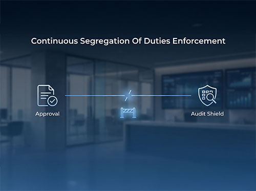 - SoD conflicts often surface during audits rather than at the point of access request.