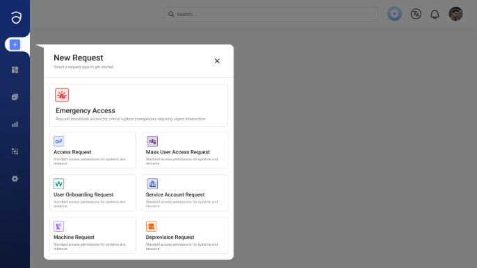 In the home screen, click the ‘+’ button from the menu bar and select Access Request.