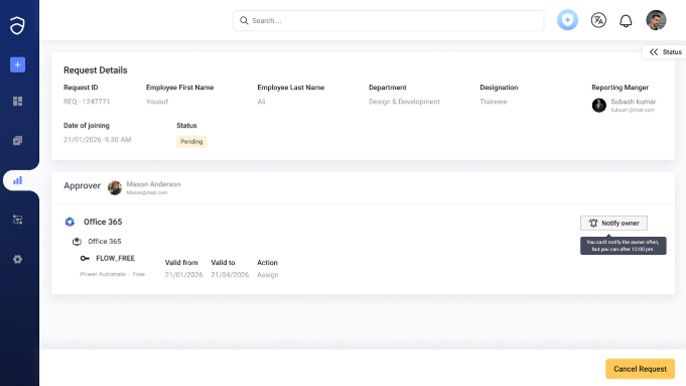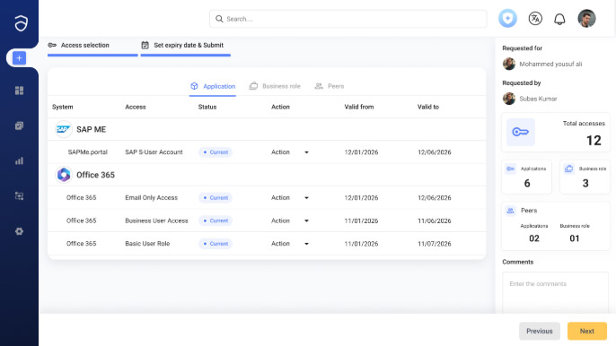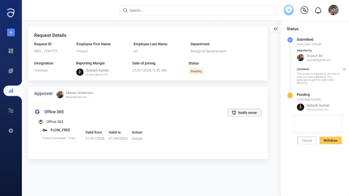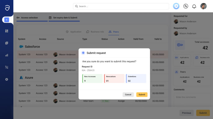 Click Submit to send your access request for approval. A request ID will be generated, and you can view your requests in the Status page.