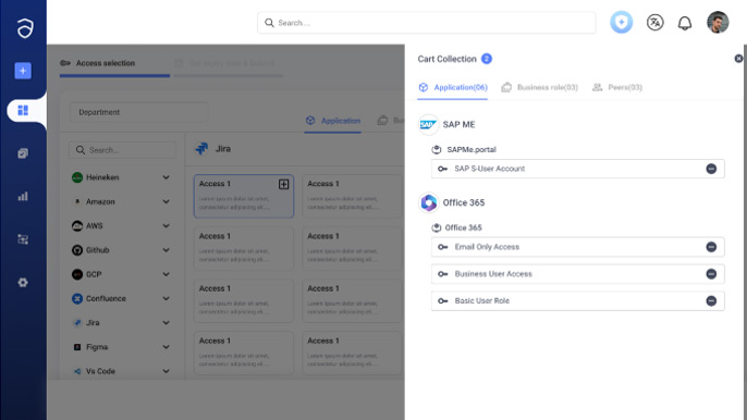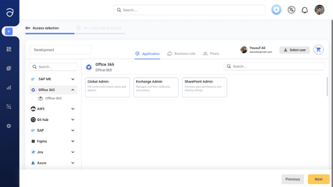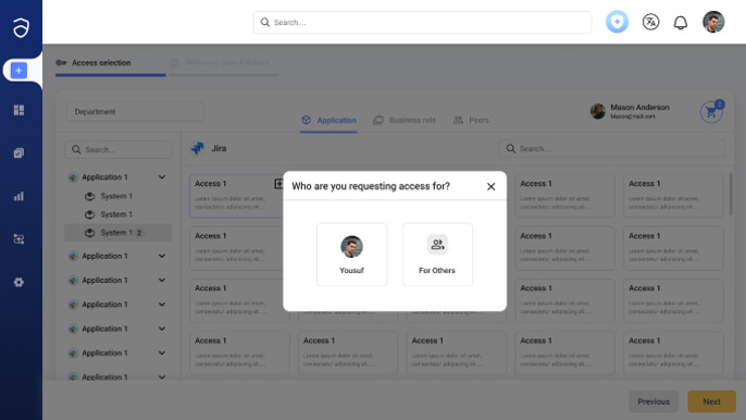 You can either request access for yourself or for your peers. Choose the profile and you can find the list of available applications on the next page.