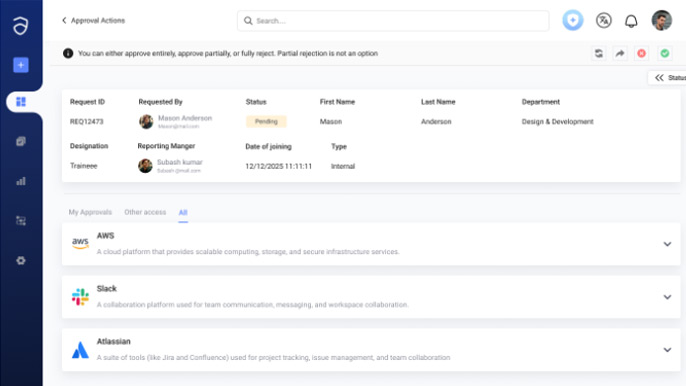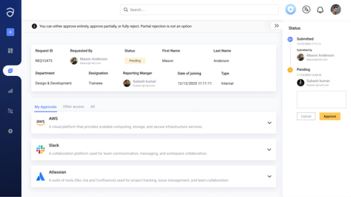 This section explains how managers or approvers review and approve access requests in Anugal.
